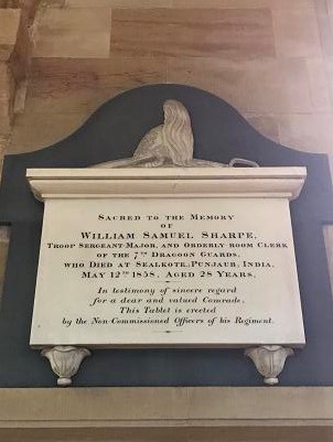 SACRED TO THE MEMORY OF/WILLIAM STEWART ESQUIRE., OF ARDVORLICH/ELDEST SON OF THE KATE MAJOR W.M. STEWART OF THE BENGAL ARMY.LIEUTENANT IN THE HONBLE. EAST INDIA COMPANYS BENGAL ARTILLERY/AND CAPTAIN COMMANDANT OF A BATTERY IN SCINDIAH'S CONTINGENT/WHO WAS SEVERLEY WOUNDED IN THE EXECUTION OF HIS DUTY AT GWALIOR/ON THE NIGHT OF 14TH JUNE 1857, BY THE MUTINOUS SEPOYS/AND BY THEM MURDERED ON THE FOLLOWING MORNING, AGED 30 YEARS/ALSO TO THE MEMORY OF HIS WIFE/JANE TURNLY, AGED 27 YEARS/YOUNGEST DAUGHTER OF THE LATE HILL WILLSON, ESQUIRE/LIEUTENANT IN THE NONBLE EAST INDIA COMPANY'S BENGAL ENGINEERS/AND THEIR SON ROBERT WALTER AGED 2 YEARS/WHO WERE KILLED ON THE NIGHT OF THE 14TH IDEM./AMONG THE FIRST VICTIMS OF THE MUTINY AT GWALIOR IN THE EAST INDIES/WHERE THE REMAINS OF BOTH THE PARENTS AND CHILD LIE INTERRED/THIS TABLET IS ERECTED BY HIS WIDOWED MOTHER AND HER CHILDREN/"WHAT I DO THOU KMOWEST NOT NOW BUT THY SHALT KNOW HEREAFTER."/ST JOHN XIIII.7