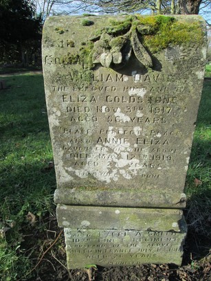 Recorded MI William David husband of Eliza Goldstone died 3 November 1917 age 56. And their daughter Annie Eliza died 12 May 1919 age 28. Also Lance Corporal A. Smith 10th Lincolnshire Regt husband of above killed in France 1 July 1916 age 26.