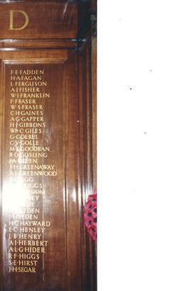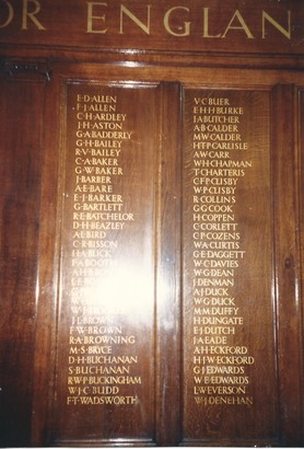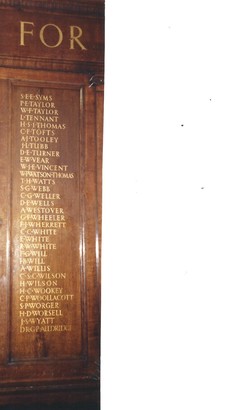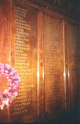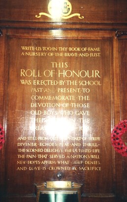 LIVE THOU FOR ENGLAND - THESE FOR ENGLAND DIED / WRITE US TOO IN THY BOOK OF FAME / A NURSERY OF THE BRAVE AND JUST. / THIS / ROLL OF HONOUR / WAS ERECTED BY THE SCHOOL / PAST AND PRESENT TO / COMMEMORATE THE / DEVOTION OF THOSE / OLD BOYS WHO GAVE / THEIR LIVES IN THE / GREAT WAR 1914 - 1918 / AND STILL FROM OUT THE HEART OF STRIFE / DIVINER ECHOES PEAL AND THRILL - / THE SCORNED DELIGHTS, THE LAVISHED LIFE / THE PAIN THAT SERVED A NATION'S WILL / NEW HOPES AFFIRM WHAT GRIEF DENIES, / AND LOVE IS CROWNED BY SACRIFICE.