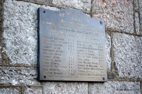 The Sailors' Institute / Hirael / In Memoriam / The following Members of this Institute gave their lives for Their Country in the Great War 1914-1918. / "GREATER LOVE HATH NO MAN THAN THIS, THAT A MAN / LAY DOWN HIS LIFE FOR HIS FRIENDS" ST JOHN IV 13 (names) "MAY THEY REST IN PEACE AND LIGHT PERPETUAL SHINE UPON THEM "