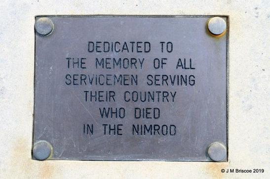 DEDICATED TO / THE MEMORY OF ALL / SERVICEMEN SERVING / THEIR COUNTRY / WHO DIED / IN THE NIMROD Project Assisted By / Moray Badenoch / & Strathspey / ENTERPRISE