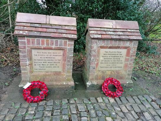 THIS PLAYING FIELD/ WAS PREPARED BY THE/ PEOPLE OF HAMPDEN AS A/ MEMORIAL TO THOSE/ BELONGING TO THE PARISH WHO WERE KILLED IN THE WAR/ 1939 - 1945/ THEIR NAMES ARE IN THE CHURCH
