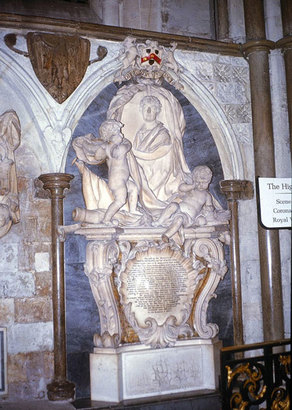 Sacred to the memory of PHILIP DE SAUSMAREZ Esqr. one of the few whose lives ought rather to be measured by their actions than their days. From sixteen to thirty seven years of age he serv'd in the navy, and was often surrounded with dangers and difficulties unparallel'd, always approving himself an able, active, and gallant officer. He went out a Lieut. on board his Majesties ship ye CENTURION under the auspicious conduct of Commodore Anson in his expedition to the south seas. He was commanding officer of the said ship when she was driven from her moorings at the Isle of Tinian. In 1746, being Capt. of the NOTTINGHAM a 60 gun ship, he (then alone) attack'd and took the Mars, a French ship of 64 guns. In the first engagement of the following year, when Admiral Anson defeated and took a squadron of French men of war and India men, he had an honourable share; and in the second, under Admiral Hawke, when the enemy after a long and obstinate resistance, was again routed, in pursuing two ships that were making their escape, he gloriously but unfortunately fell. He was the son of MATTHEW de SAUSMAREZ, of the Island of GUERNSEY, Esqr. by ANN DURELL of the Island of JERSEY his wife. He was born Nov. 17th 1710, kill'd October 14th 1747, buried in the old Church at PLYMOUTH with all the honours due to his distinguish'd merits and this monument is erected out of gratitude and affection by his brothers and sisters.