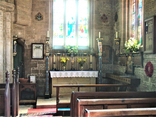 THE ANCIENT CHAPEL OF OUR LADY WAS RESTORED A.D. 1925 IT WAS FURTHER ENRICHED AND BEAUTIFIED A.D. 1946 IN HONOUR OF THE MEN AND WOMEN WHO SERVED IN THE WAR 1939 1945 AND IN PROUD AND LOVING MEMORY OF THESE WHO GAVE THEIR EARTHLY LIVES, ESPECIALLY (names) of this parish