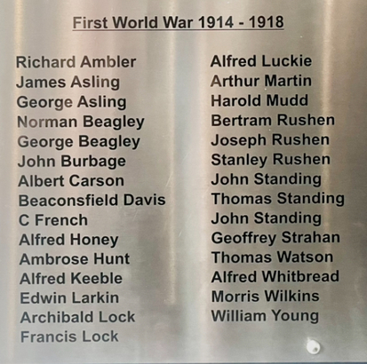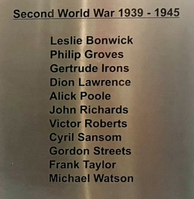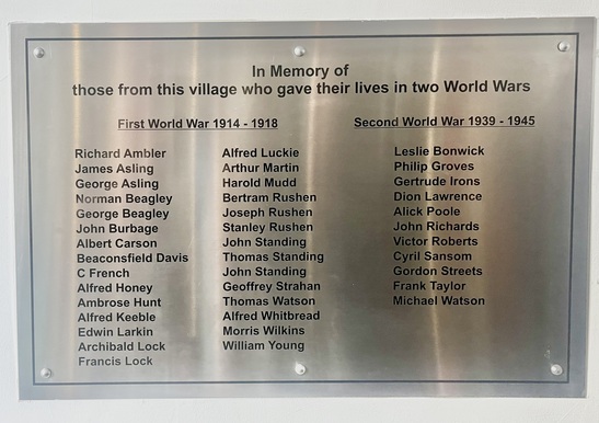 Tatsfield WW1 & WW2 Memorial in the Old Ship Pub - Taken by K M Warburton 15 Jul 2025
