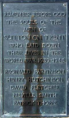 REMEMBER BEFORE GOD/ THE SOULS OF THE/MEN OF/SUTTON ON TRENT/ WHO LAID DOWN THEIR LIVES IN THE/WORLD WAR 1939-1945/[names]