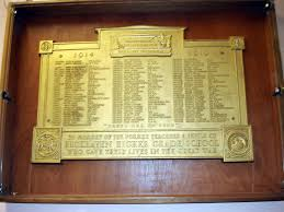 At top-[…..]/ROLL OF HONOUR 1914 [names in 3 columns] 1919/"THERE ARE NO DEAD" ; At base-IN MEMORY OF THE FORMER TEACHER & PUPILS OF/BUCKHAVEN HIGHER GRADE SCHOOL/WHO GAVE THEIR LIVES IN THE GREAT WAR