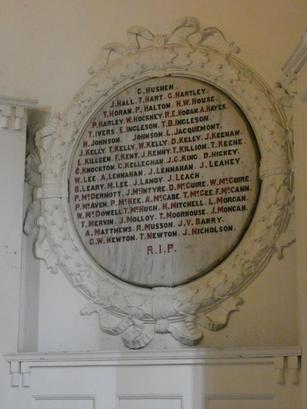 ORATE PRO ANIMABUS/ HANC PARŒICHIAM OLIM HABITANTIUM/ QUI/ PER BELLUM MAXIMUM/ VITA CONCESSERUNT/ A.S. MCMXIV – MCMXVIII; Circular tablets: (names) / R.I.P.