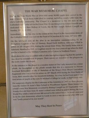 Leeds Cathedral Chapel explanatory notice, date of photo estimated - Taken by © John E Scurr (WMR-83449) 01 Mar 2018