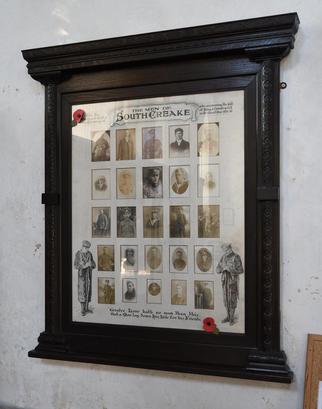 TO THE/ GLORY OF GOD &/ IN MEMORY OF/ THE MEN OF SOUTH CREAKE/ WHO ANSWERING THE CALL/ OF KING & COUNTRY FELL/ IN THE GREAT WAR 1914‐18/ (Photos)/ “GREATER LOVE HATH NO MAN THAN THIS./ THAT A MAN LAY DOWN HIS LIFE FOR HIS FRIENDS.”