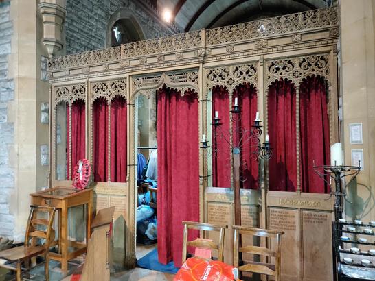 SCREEN: ER SERCHUS COF AM AELODAU OR PLWYF HON A COLLODD EU BYWYD YN YR AIL RHYFEL BYD/ (NAMES)/ IN LOVING MEMORY OF THE MEMBERS OF THIS PARISH WHO LOST THEIR LIVES DURING THE SECOND WORLD WAR AND ALSO THE KOREAN WAR ELSEWHERE: (KOREA NAMES)