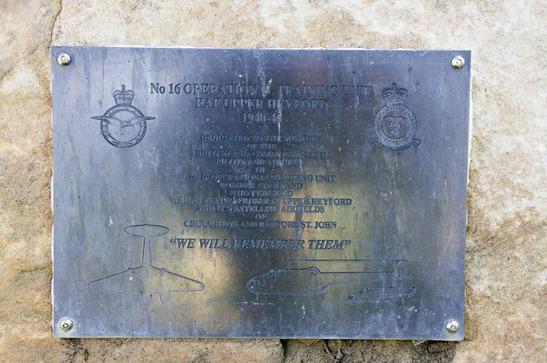 NO 16 OPERATIONAL TRAINING UNIT/RAF UPPER HEYFORD/1940-46/DEDICATED TO THE MEMORY/OF THE/BRITISH AND COMMONWEALTH/PILOTS AND AIRCREW/OF/NO/ 16 OPERATIONAL TRAINING UNIT/BOMBER COMMAND/WHO PERISHED/FLYING FROM RAF UPPER HEYFORD/AND IT'S SATELLITE AIRFIELDS/OF/CROUGHTON AND BARFORD ST. JOHN/"WE WILL REMEMBER THE,"
