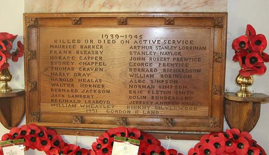 WW2 Board: 1939-1945/KILLED OR DIED ON ACTIVE SERVICE/[names in 2 columns]/1951 [name]