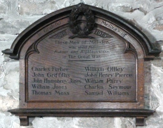 In Grateful Memory of/1914 - 1919/These Men of Meliden,/who died for/Honour and Righteousness,/in The Great War/[names in 2 columns]