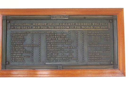 LAUS DEO - IN HONOURED MEMORY OF OUR GALLANT MEMBERS WHO FELL IN THE GREAT WAR FOR THE FREEDOM OF THE WORLD 1914 - 1919