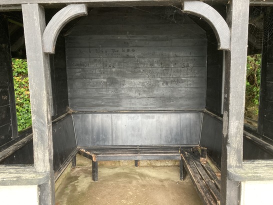 Shelter internal view (damaged seating) - Taken by M E Harris 16 Jun 2020