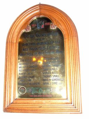 1914 – 1918/TO THE GLORY OF GOD AND IN/GRATEFUL MEMORY OF THE/MEN FROM THIS CHURCH/WHO FELL IN THE GREAT WAR/[names in 2 columns]/ “THEIR NAME LIVETH FOR EVERMORE”