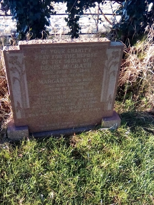 ... AND SONS OF THE ABOVE/PTE DENIS MCGRATH/KILLED IN ACTION IN HOLLAND/OCT 23RD 1944 AGED 22 YEARS/PTE. JOHN MCGRATH/DIED MAY 1ST 1945/AGED 24 YEARS//"ON THESE SOULS/SWEET JESUS HAVE MERCY"
