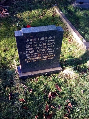 JOHN GIBBONS/DIED 6TH JULY 1946/EDITH GIBBONS/DIED 13TH FEB. 1964/MICHAEL GIBBONS R.A.F/DIED 26TH FEB 1943/BURIED AT COLOGNE/KATHERINE GIBBONS/DIED 26TH MARCH 1986.