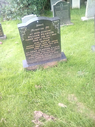 Sweet/Memories Of/MY DEAR HUSBAND/WILLIAM PEARSON/PASSED AWAY FEB. 20TH 1960/AGED 63 YEARS/ALSO SARAH/DEARLY LOVED WIFE OF ABOVE/PASSED AWAY MARCH 31ST 1973/AGED 77 YEARS/SGT DENIS PEARSON R.A.F.V.R/DEARLY LOVED ONLY SON OF ABOVE/MISSING ON OPERATIONS/OVER COLOGNE MAY 31ST 1942/AGED 21 YEARS