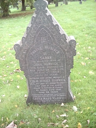 ... IN PROUD AND LOVING MEMORY OF/COLIN WINDER WARWICK/MC 2ND LIEUT 8TH BORDER REGIMENT/KILLED IN ACTION IN FRANCE/ON MARCH 22ND 1918/AGED 26 YEARS