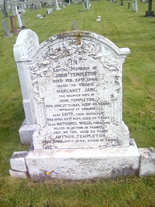.... ALSO NATHANIEL WIELD [TEMPLETON] THEIR SON/KILLED IN ACTION IN FRANCE/JULY 3RD 1916 AGED 23 YEARS...