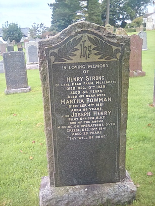 .... ALSO JOSEPH HENRY [STRONG]/PILOT OFFICER RAF/SON OF THE ABOVE/MISSING ON OPERATIONS OVER/GREECE DEC 13TH 1941/AGED 29 YEARS/"THY WILL BE DONE"