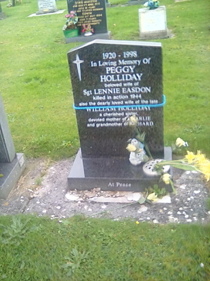 1920-1998/IN LOVING MEMORY OF/PEGGY/HOLLIDAY/BELOVED WIFE OF SGT LENNIE EASDON/KILLED IN ACTION 1944/ALSO THE DEARLY LOVED WIFE OF/THE LATE/WILLIAM HOLLIDAY...