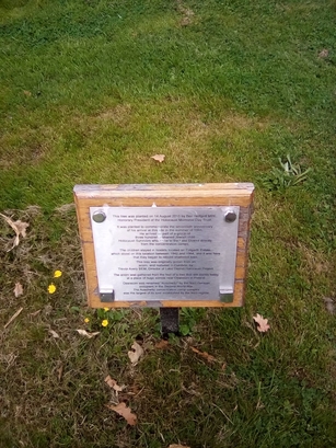 This tree was planted on 14 August 2015 by Ben Helfgott MBE/Honorary President of the Holocaust Memorial Day Trust/It was presented to commemorate the seventieth anniversary/of his arrival at this site in the Summer of 1945/He came as part of a group of/three hundred orphaned Jewish child/Holocaust survivors who came to the Lake Distict directly/from the concentration camps/The children stayed in hostels located on Calgarth Estate/which stood on this location between 1942 and 1964 and it was here/that they began to rebuild shattered lives/This tree was originally grown from an/acorn, and nurtured in Cumbria by/Trevor Avery BEM, Director of Lake District Holocaust Project/The acorn was gathered from the foot of a tree that still stands today/at the place of huge sorrow near Oswiecim in Poland./Oswiecim was renamed "Auschwitz" by the Nazi German/occupiers in the Second World War/The Auschwitz concentration camp complex/was the largest of its kind established by the Nazi regime.