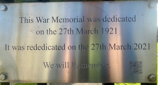 Memorial from inside Bowling Green - Taken by Eifion Williams 24 Feb 2022