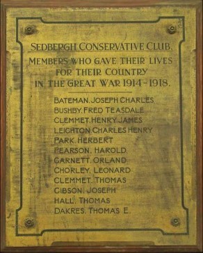 SEDBERGH CONSERVATIVE CLUB/MEMBERS WHO GAVE THEIR LIVES/FOR GTHEIR COUNTRY/IN THE GREAT WAR/1914-1918/[names]