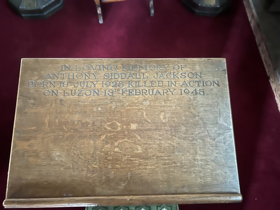 IN LOVING MEMORY OF/ANTHONY SIDDALL JACKSON/BORN 18TH JULY 1925 KILLED IN ACTION/ON LUZON 13TH FEBRUARY 1945