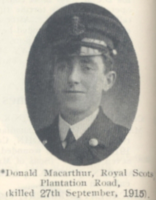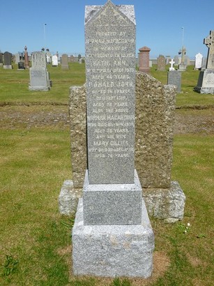 ..../DONALD JOHN [MACARTHUR]/KILLED IN FRANCE/27TH SEPT 1915/AGED 26 YEARS/...