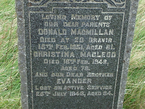 ..../ALSO OUR DEAR BROTHER/EVANDER [MACMILLAN]/LOST ON ACTIVE SERVICE/25TH JULY 1943, AGED 34