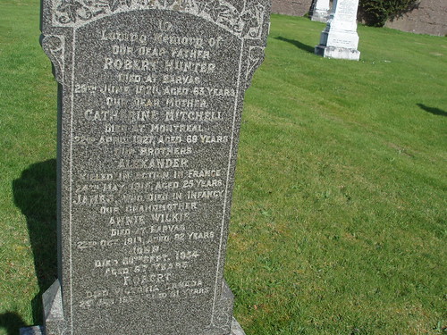 ...../HER BROTHERS/ALEXANDER [HUNTER]/KILLED IN ACTION IN FRANCE/24TH MAY 1915 AGED 25 YEARS/.....