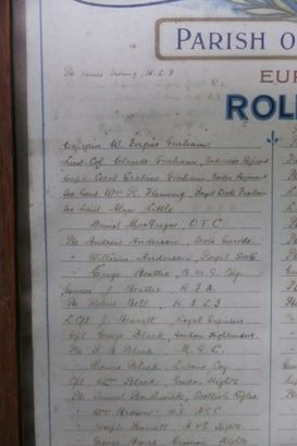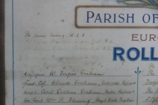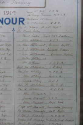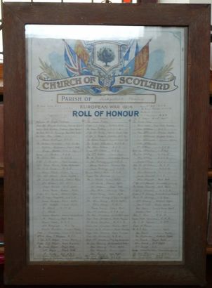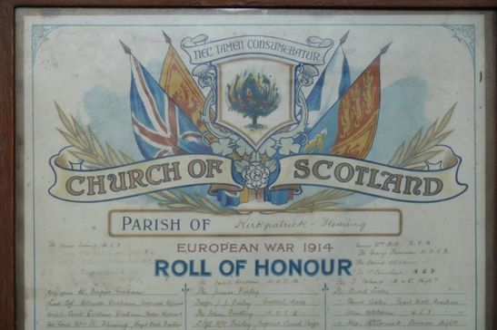 NEC TAMEN CONSUMEBATUR/ CHURCH OF SCOTLAND/ PARISH OF Kirkpatrick Fleming/ EUROPEAN WAR/ 1914/ ROLL OF HONOUR/ (134 Names)