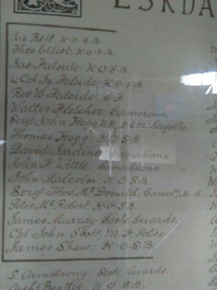 ROLL OF HONOUR/ESKDALEMUIR/[names in 2 columns]