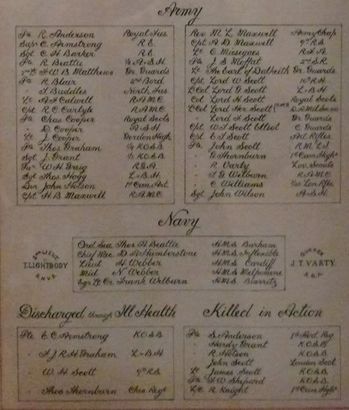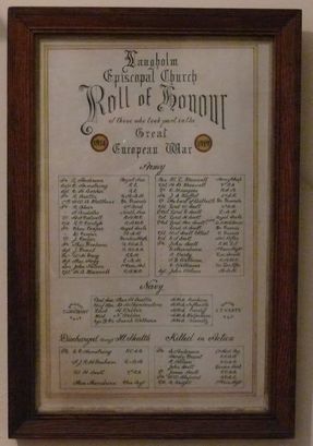 LANGHOLM/ EPISCOPAL CHURCH/ ROLL OF HONOUR/ OF THOSE WHO TOOK PART IN THE/ GREAT/ 1914 1919/ EUROPEAN WAR/ (names)
