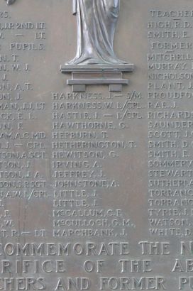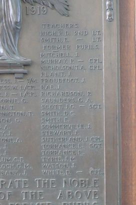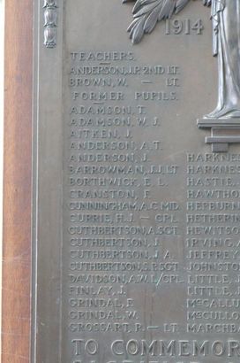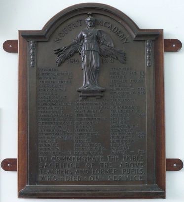 MOFFAT ACADEMY/ 1914 1919/ (names)/ TO COMMEMORATE THE NOBLE/ SACRIFICE OF THE ABOVE/ TEACHERS AND FORMER PUPILS/ WHO DIED ON SERVICE