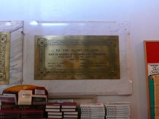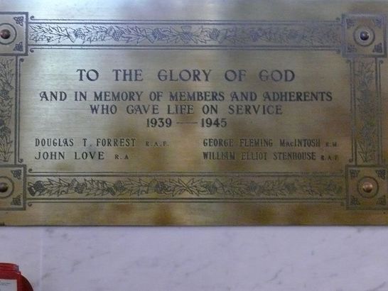 TO THE GLORY OF GOD/AND IN MEMORY OF MEMBERS AND ADHERENTS/WHO GAVE LIFE ON SERVICE/1939-1945/[names]