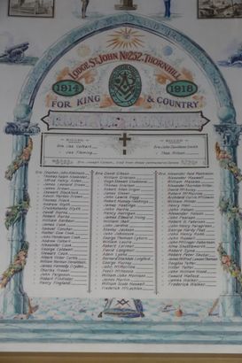 LODGE ST JOHN NO 252 THORNHILL/1914 FOR KING & COUNTRY 1918/ROLL OF HONOUR/KILLED/[names]/[names of the served & returned]