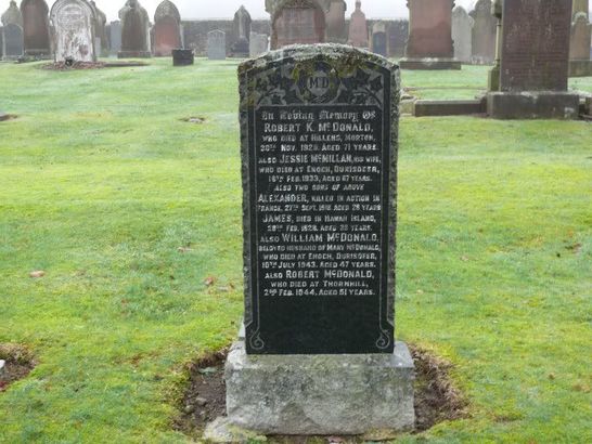 .…./ALSO THE TWO SONS OF THE ABOVE/ALEXANDER [MCDONALD]/, KILLED IN ACTION IN/FRANCE 27TH SEPT.1918 AGED 29 YEARS/…..