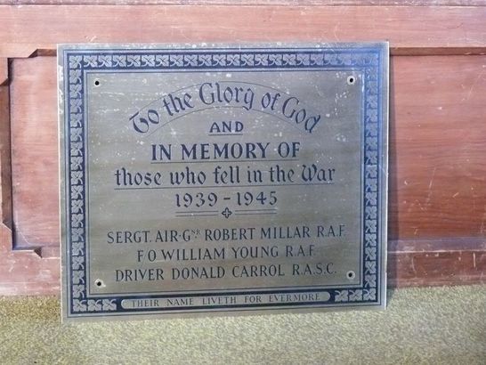 TO THE GLORY OF GOD/ AND/ IN MEMORY OF THOSE WHO FELL IN THE WAR/ 1939 - 1945/ (names)/ THEIR NAME LIVETH FOR EVERMORE