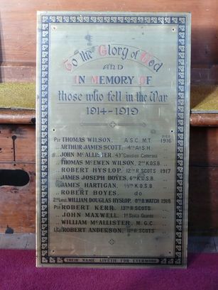 TO THE GLORY OF GOD/ AND/ IN MEMORY OF/ THOSE WHO FELL IN THE WAR/ 1914 - 1919/ (names)/ THEIR NAME LIVETH FOR EVERMORE
