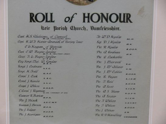 ROLL OF HONOUR/Keir Parish Church, Dumfriesshire/[34 names]