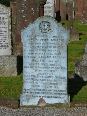 …../ALSO PTE JOHH JAMES MURDIE/A & S HDRS KILLED IN ACTION 4TH MAR/1916 AGED 27 YEARS, BURIED IN BRITISH/CEMETERY, VERMELLES/…..
