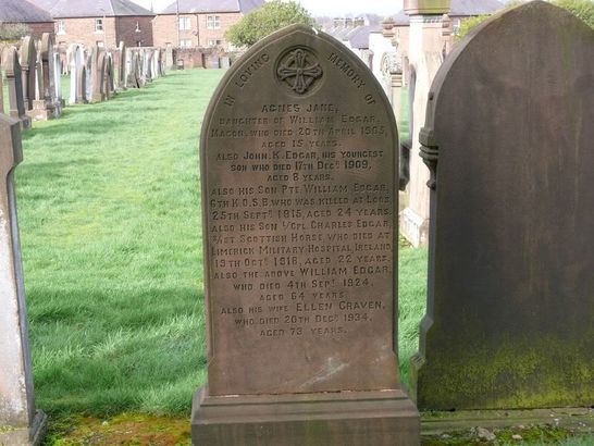 …./ALSO HIS SON PTE. WILLIAM EDGAR/6TH K.O.S.B. WHO WAS KILLED AT LOOS/25TH SEPT 1915 AGED 24 YEARS/….