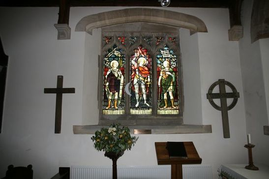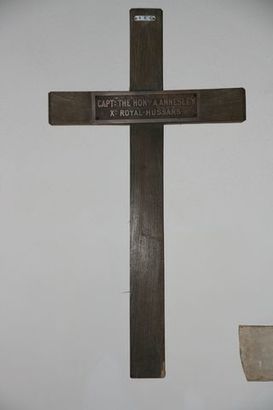 Captain A Annesley battlefield cross to left of window date of photo estimated - Taken by http://www.theygavetheirtoday.com/blechingdon.html 18 Aug 2015