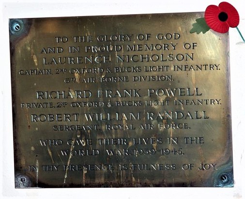 TO THE GLORY OF GOD / AND IN PROUD MEMORY OF / (3 NAMES) / WHO GAVE THEIR LIVES IN THE / WORLD WAR. 1939 - 1945. / IN THY PRESENCE IS FULLNESS OF JOY.