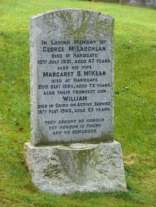 ..../ALSO THEIR YOUNGEST SON/WILLIAM [MCLAUCHLAN]/DIED IN CAIRO ON ACTIVE SERRVICE/15TH FEBY 1942, AGED 23 YEARS/THEY SOUGHT NO HONOUR/YET HONOUR IS THEIRS/AND WE REMEMBER